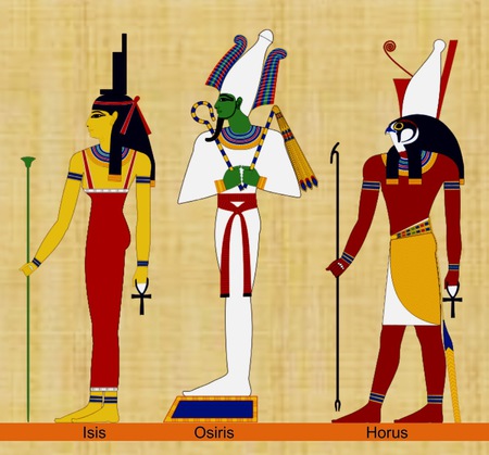 Ancient Egyptians worshipped many gods but three most important gods were Osirs the god of death.His wife Isis the maker of the first mummy and their son Horus the protector of the pharaoh.
